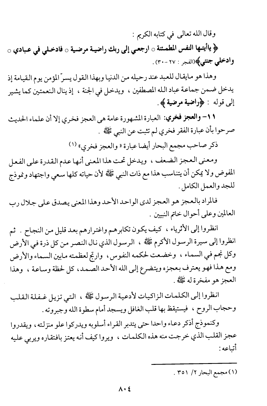 11 - والعجز فخري: العبارة المشهورة عامة هي العجز فخري إلا أن علماء الحديث صرحوا بأن عبارة الفقر فخري لم تثبت عن النبي (ص).
