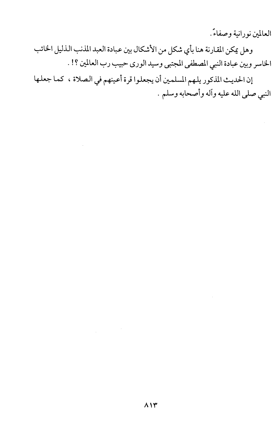 وهل يمكن المقارنة هنا بأي شكل من الأشكال بين عبادة العبد المذنب الذليل الخائب الخاسر وبين عبادة النبي المصطفى المجتبى وسيد الورى حبيب رب العالمين؟!.