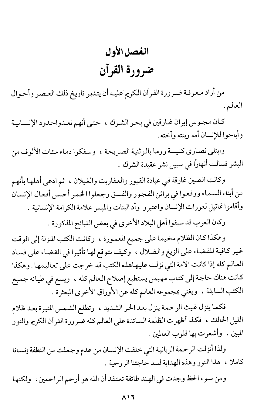 من أراد معرفة ضرورة القرآن الكريم عليه أن يتدبر تاريخ ذلك العصر وأحوال العالم.
