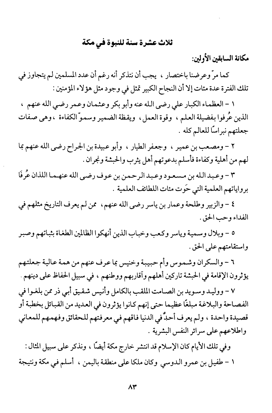 2 - ومصعب بن عمير، وجعفر الطيار، وأبو عبيدة بن الجراح رضي الله عنهم بما لهم من أهلية وكفاءة فأسلم بدعوتهم أهل يثرب والحبشة ونجران.