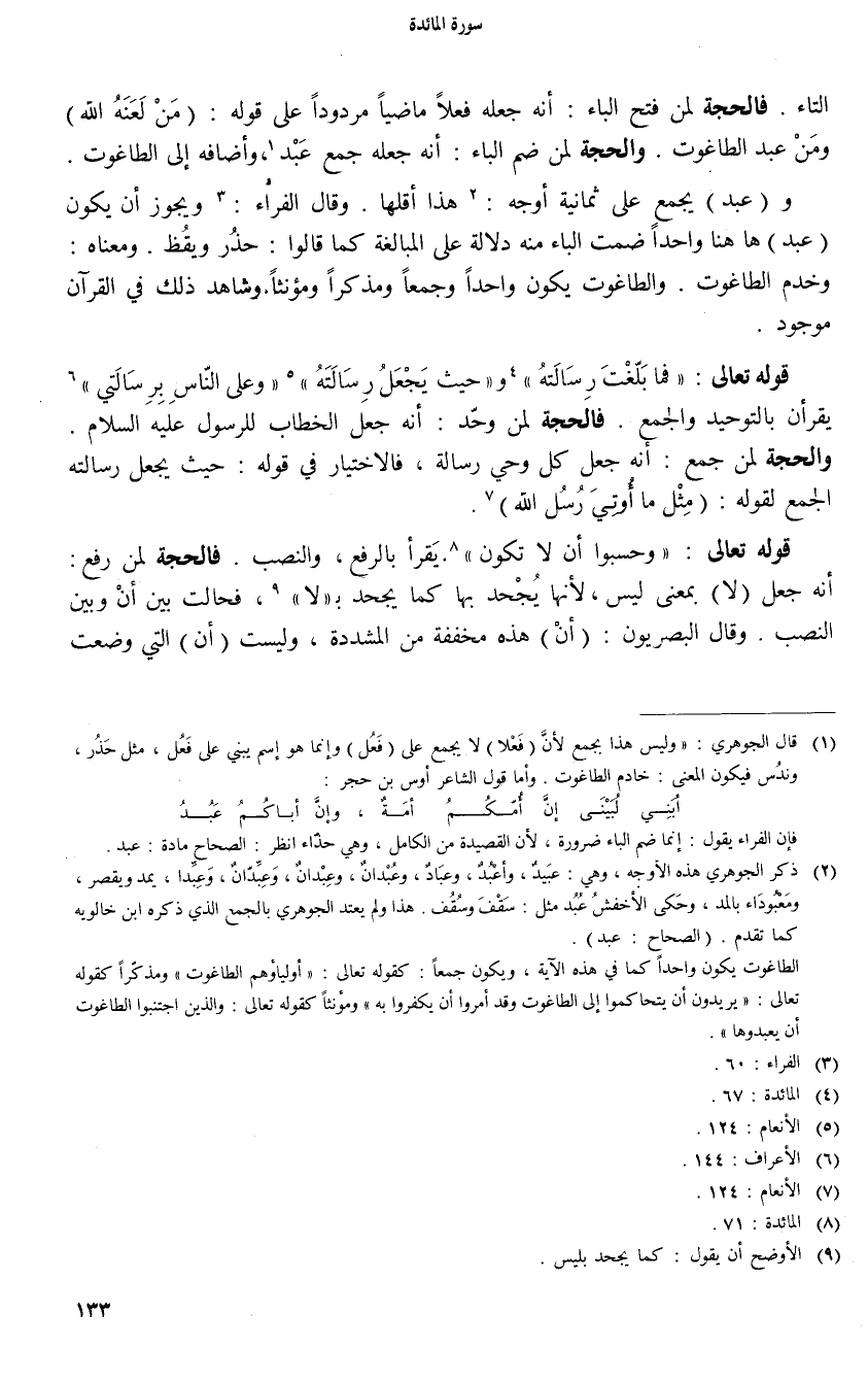 (1) قال الجوهري: «وليس هذا بجمع لأنّ (فعلا) لا يجمع على (فعل) وإنما هو اسم يبني على فعل، مثل حذر، وندس فيكون المعنى: خادم الطاغوت. وأما قول الشاعر أوس بن حجر: