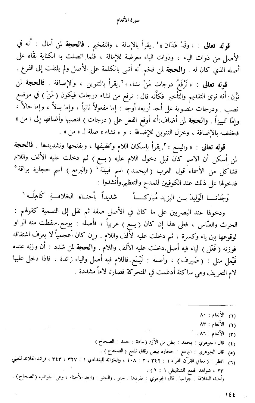 (6) انظر: (معاني القرآن للفراء 1: 342، 2: 408، والخزانة للبغدادي 1: 327، 343، فرائد القلائد للعيني 23، شواهد الهمع للشنقيطي 1: 6).