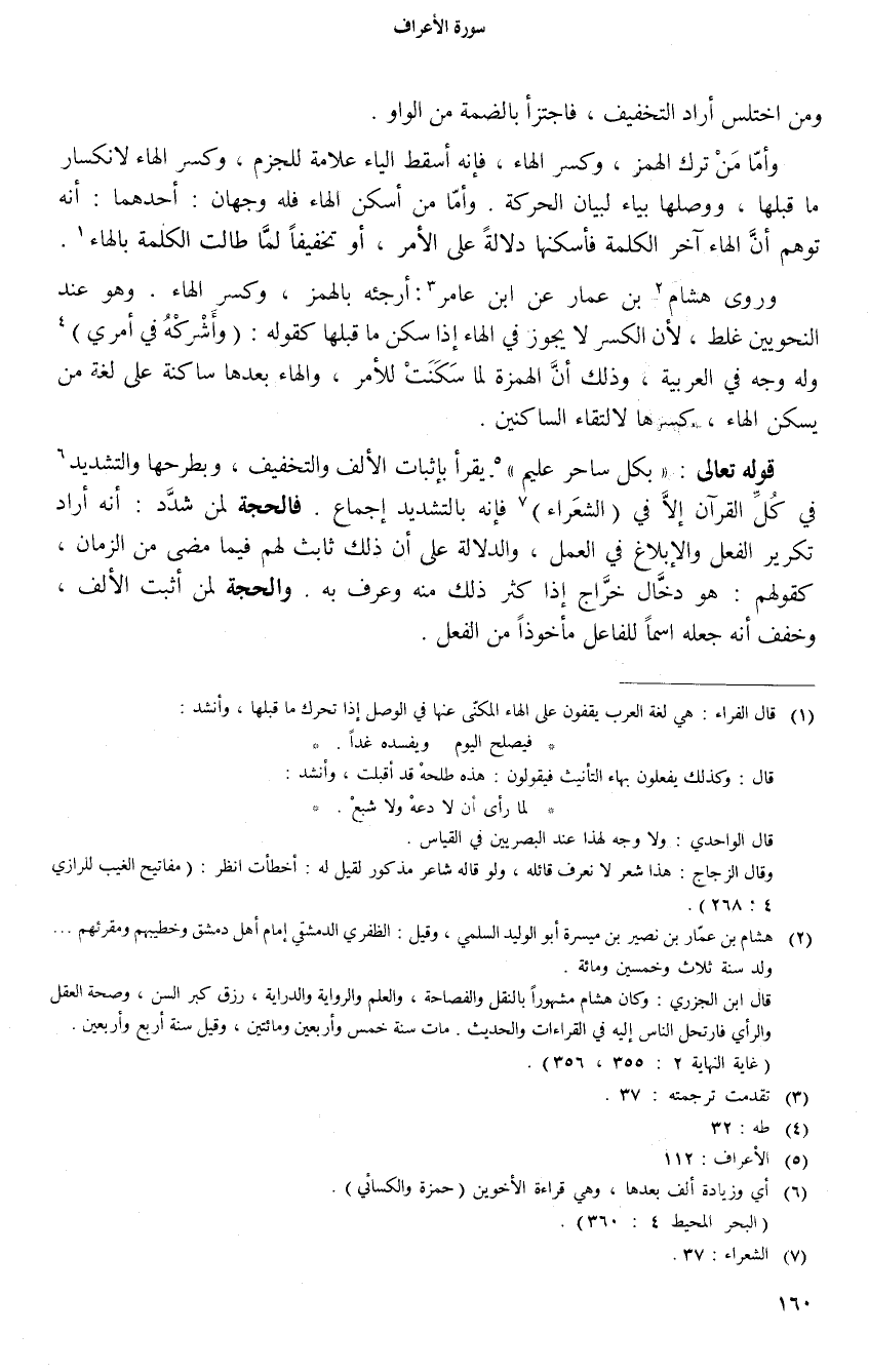 (1) قال الفراء: هي لغة العرب يقفون على الهاء المكنّى عنها في الوصل إذا تحرك ما قبلها، وأنشد:
