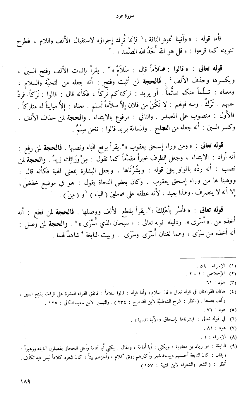 (4) هاتان القراءتان في قوله تعالى قالَ سَلامٌ وأما قوله: قالُوا سَلاماً: فاتفق القراء العشرة على قراءته بفتح السين، وألف بعدها. (انظر: شرح الشاطبيّة لابن القاصح: 234). والتيسير لابن سعيد الدّاني: 125.