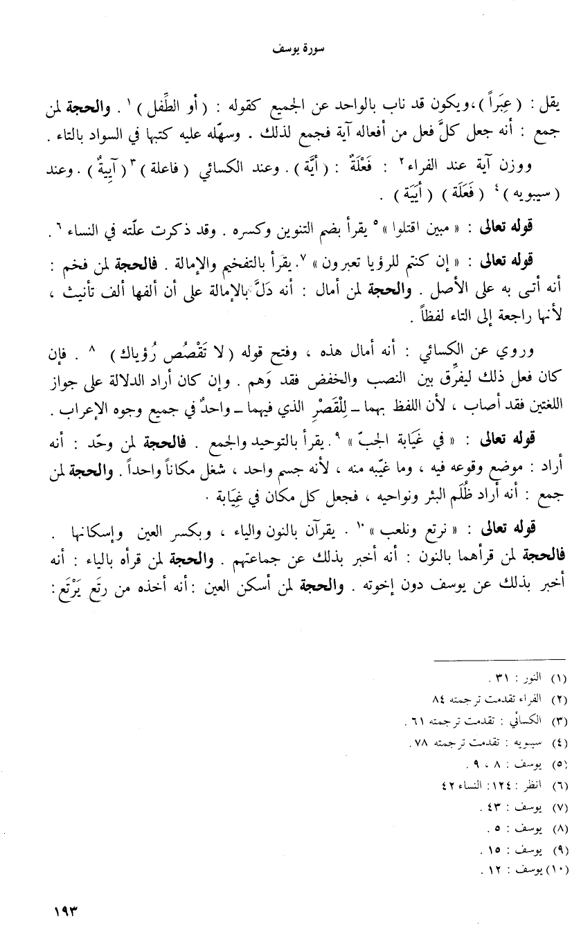 فالحجة لمن قرأهما بالنون: أنه أخبر بذلك عن جماعتهم. والحجة لمن قرأه بالياء: أنه أخبر بذلك عن يوسف دون إخوته. والحجة لمن أسكن العين: أنه أخذه من رتع يرتع: