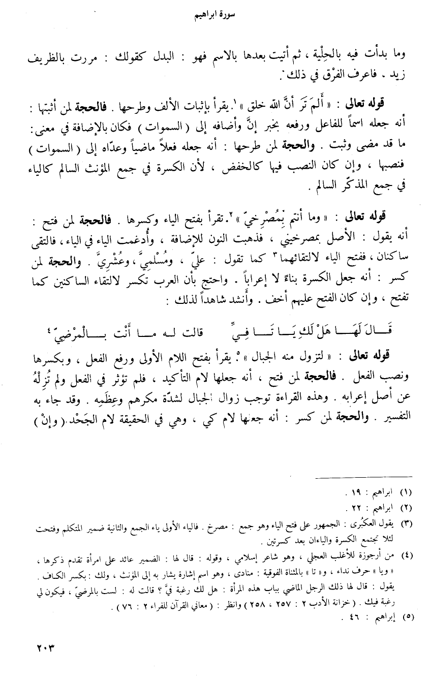 (3) يقول العكبرى: الجمهور على فتح الياء وهو جمع: مصرخ. فالياء الأولى ياء الجمع والثانية ضمير المتكلم وفتحت لئلا تجتمع الكسرة والياءان بعد كسرتين.
