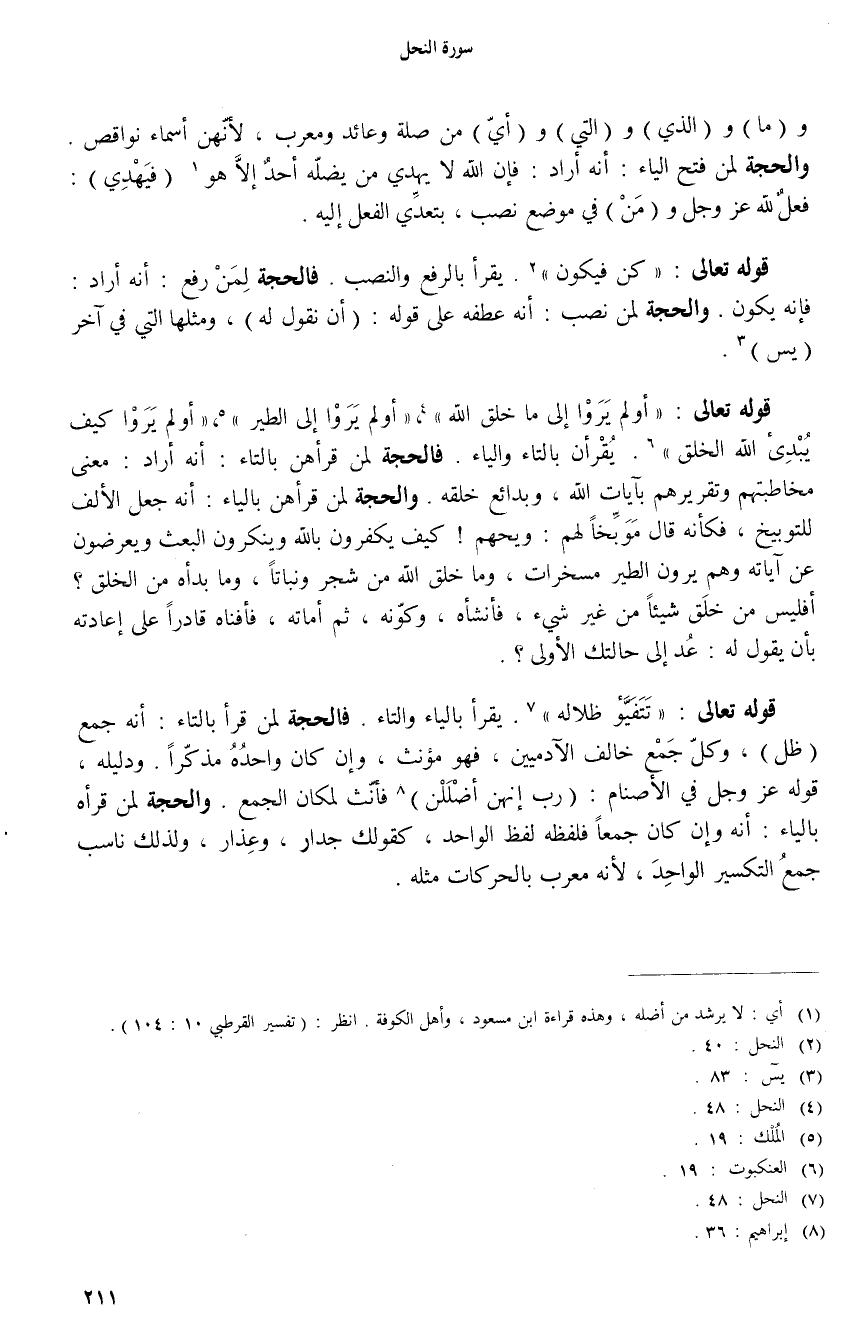 قوله تعالى: أَوَلَمْ يَرَوْا إِلى ما خَلَقَ اللَّهُ «4»، أَوَلَمْ يَرَوْا إِلَى الطَّيْرِ «5»، أَوَلَمْ يَرَوْا كَيْفَ يُبْدِئُ اللَّهُ الْخَلْقَ «6». يقرأن بالتاء والياء. فالحجة لمن قرأهن بالتاء: أنه أراد: معنى مخاطبتهم وتقريرهم بآيات الله، وبدائع خلقه. والحجة لمن قرأهن بالياء: أنه جعل الألف للتوبيخ، فكأنه قال موبّخا لهم: ويحهم! كيف يكفرون بالله وينكرون البعث ويعرضون عن آياته وهم يرون الطير مسخرات، وما خلق الله من شجر ونباتا، وما بدأه من الخلق؟