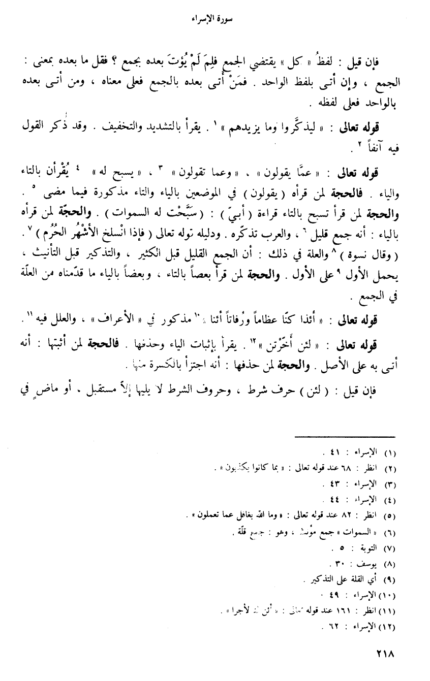 قوله تعالى: عَمَّا يَقُولُونَ، و (عما تقولون) «3»، تُسَبِّحُ لَهُ «4» يقرأن بالتاء والياء. فالحجة لمن قرأه (يقولون) في الموضعين بالياء والتاء مذكورة فيما مضى «5» والحجة لمن قرأ تسبح بالتاء قراءة (أبيّ): (سبّحت له السماوات). والحجّة لمن قرأه بالياء: أنه جمع قليل «6»، والعرب تذكّره. ودليله قوله تعالى فَإِذَا انْسَلَخَ الْأَشْهُرُ الْحُرُمُ «7».