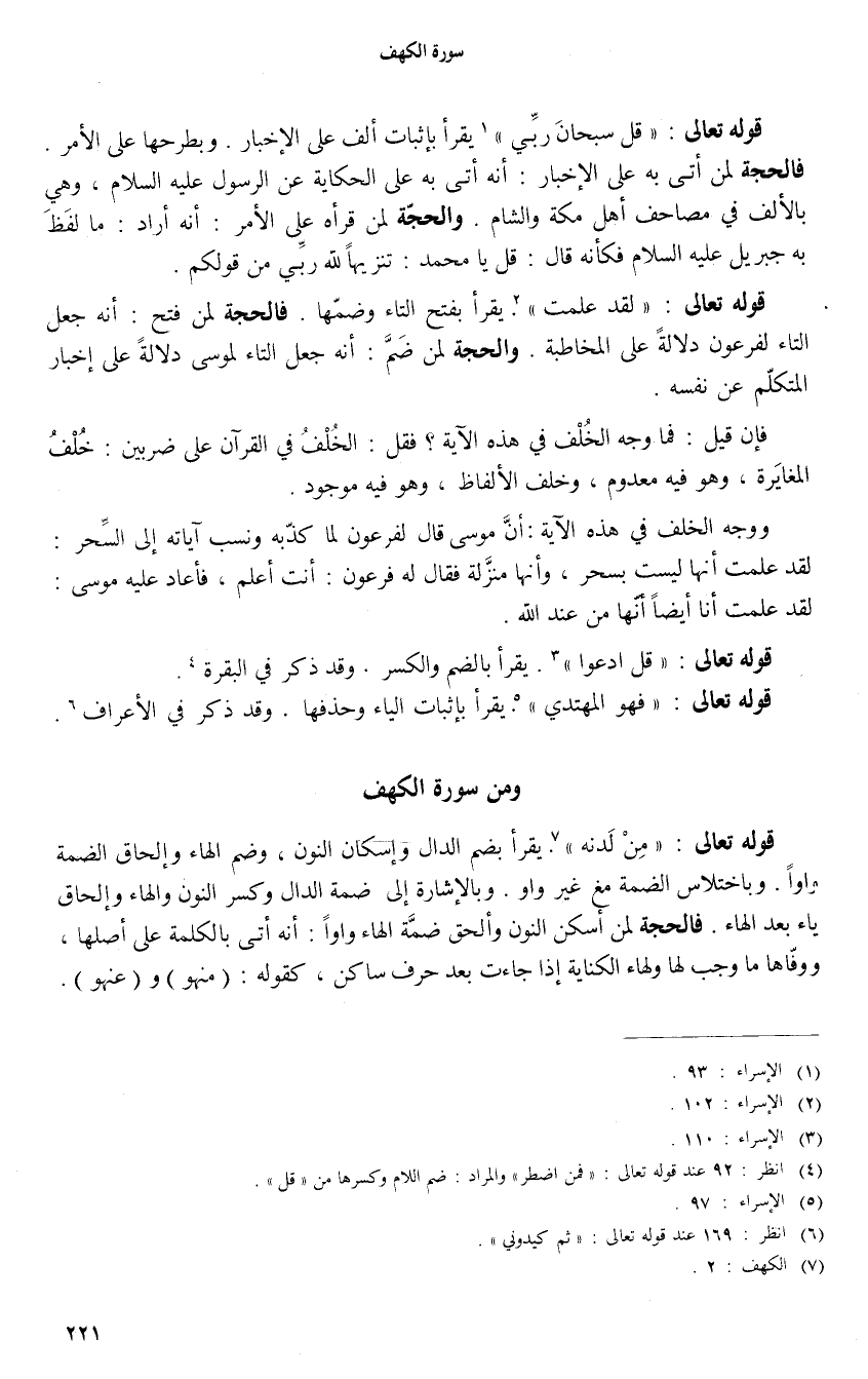 فالحجة لمن أتى به على الإخبار: أنه أتى به على الحكاية عن الرسول عليه السلام، وهي بالألف في مصاحف أهل مكة والشام. والحجّة لمن قرأه على الأمر: أنه أراد: ما لفظ به جبريل عليه السلام فكأنه قال: قل يا محمد: تنزيها لله ربّي من قولكم.