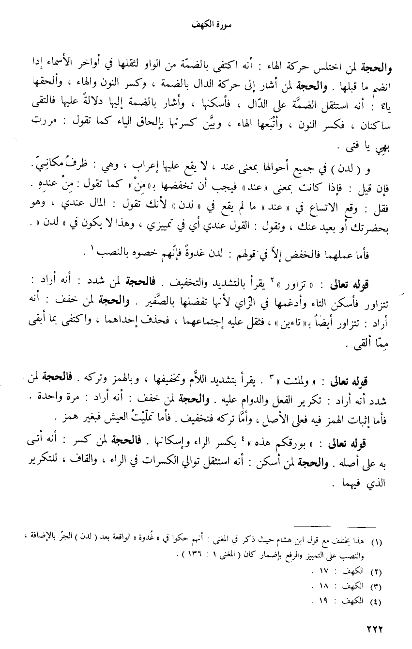 والحجة لمن اختلس حركة الهاء: أنه اكتفى بالضمّة من الواو لثقلها في أواخر الأسماء إذا انضم ما قبلها. والحجة لمن أشار إلى حركة الدال بالضمة، وكسر النون والهاء، وألحقها ياء: أنه استثقل الضمّة على الدّال، فأسكنها، وأشار بالضمة إليها دلالة عليها فالتقى ساكنان، فكسر النون، وأتبعها الهاء، وبيّن كسرتها بإلحاق الياء كما تقول: مررت بهي يا فتى.