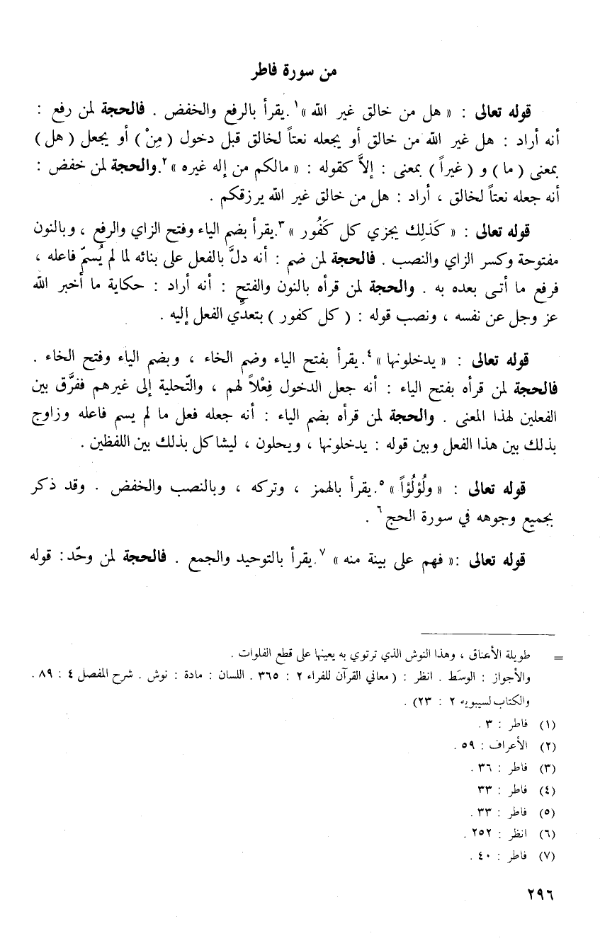 فالحجة لمن قرأه بفتح الياء: أنه جعل الدخول فعلا لهم، والتّحلية إلى غيرهم ففرّق بين الفعلين لهذا المعنى. والحجة لمن قرأه بضم الياء: أنه جعله فعل ما لم يسم فاعله وزاوج بذلك بين هذا الفعل وبين قوله: يدخلونها، ويحلون، ليشاكل بذلك بين اللفظين.