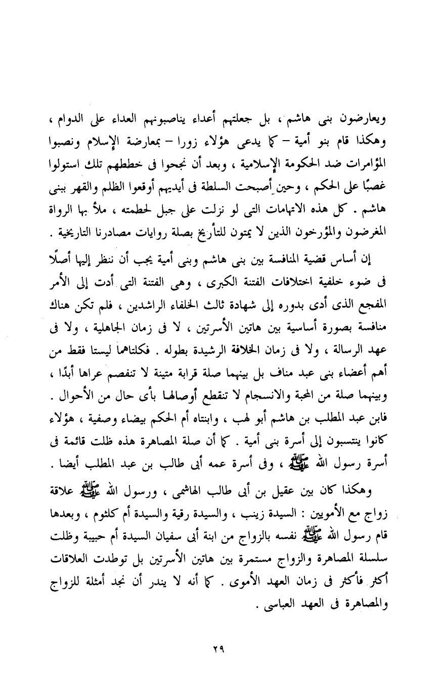 ويعارضون بني هاشم، بل جعلتم أعداء يناصبونهم العداء على الدوام، وهكذا قام بنو أمية -كما يدعى هؤلاء زورًا- بمعارضة الإسلام ونصبوا المؤامرات ضد الحكومة الإسلامية، وبعد أن نجحوا في خططهم تلك استولوا غصبًا على الحكم، وحين أصبحت السلطة في أيديهم أوقعوا الظلم والقهر ببني هاشم. كل هذه الاتهامات التي لو نزلت على جبل لحطمته، ملأ بها الرواة المغرضون والمؤرخون الذين لا يمتون للتأريخ بصلة روايات مصادرنا التاريخية.