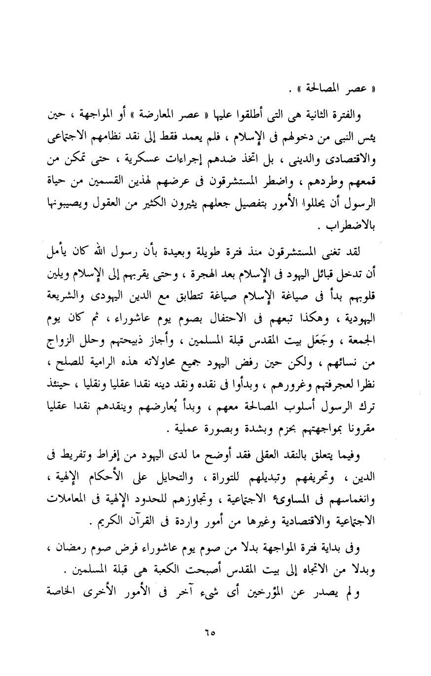 لقد تغنى المستشرقون منذ فترة طويلة وبعيدة بأن رسول الله كان يأمل أن تدخل قبائل اليهود في الإسلام بعد الهجرة، وحتى يقربهم إلى الإِسلام ويلين قلوبهم بدأ في صياغة الإسلام صياغة تتطابق مع الدين اليهودي والشريعة اليهودية، وهكذا تبعهم في الاحتفال بصوم يوم عاشوراء، ثم كان يوم الجمعة، وجَعَل بيت المقدس قبلة المسلمين، وأجاز ذبيحتهم وحلل الزواج من نسائهم، ولكن حين رفض اليهود جميع محاولاته هذه الرامية للصلح، نظرًا لعجرفتهم وغرورهم، وبدأوا في نقده ونقد دينه نقدًا عقليًا ونقليًا، حينئذ ترك الرسول أسلوب المصالحة معهم، وبدأ يُعارضهم وينقدهم نقدًا عقليًا