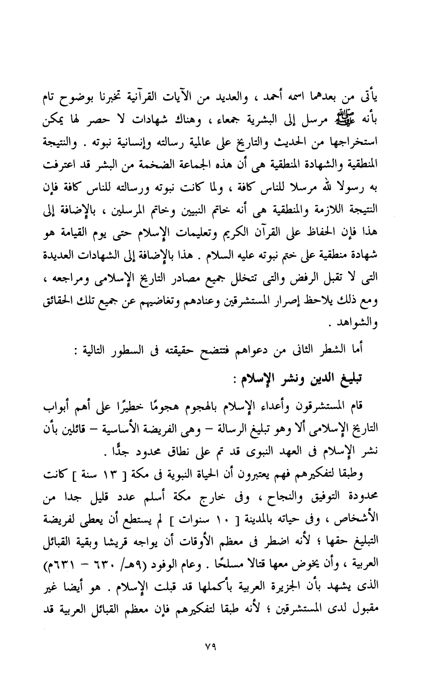 قام المستشرقون وأعداء الإسلام بالهجوم هجومًا خطرًا على أهم أبواب التاريخ الإسلامي ألا وهو تبليغ الرسالة -وهي الفريضة الأساسية- قائلين بأن نشر الإِسلام في العهد النبوي قد تم على نطاق محدود جدًّا.