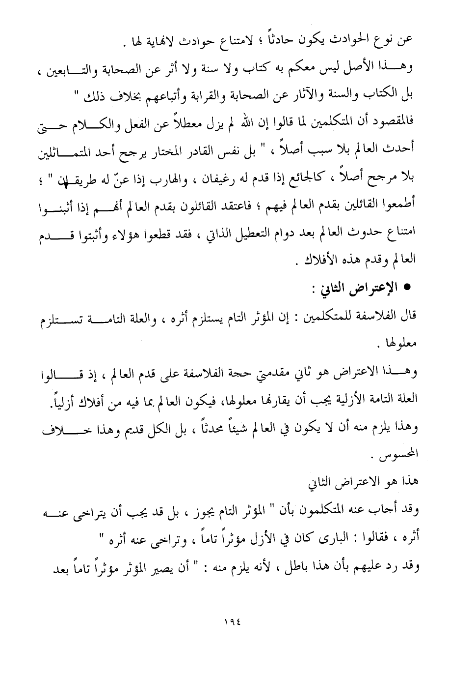 قال الفلاسفة للمتكلمين: إن المؤثر التام يستلزم أثره، والعلة التامة تستلزم معلولها.