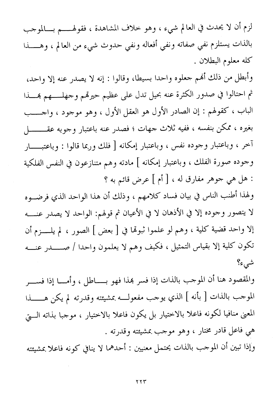 لزم أن لا يحدث في العالم شيء، وهو خلاف المشاهدة، فقولهم بالموجب بالذات يستلزم نفي صفاته ونفي أفعاله ونفي حدوث شيء من العالم، وهذا كله معلوم البطلان.
