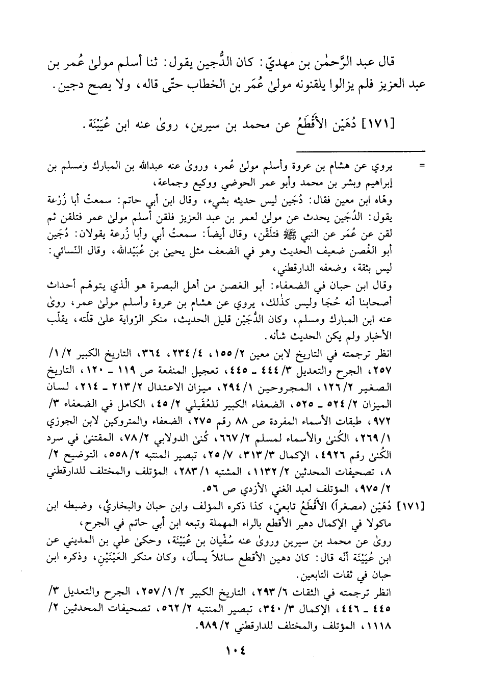 171- دهين الأقطع عن محمد بن سيرين، روى عنه ابن عيينة.