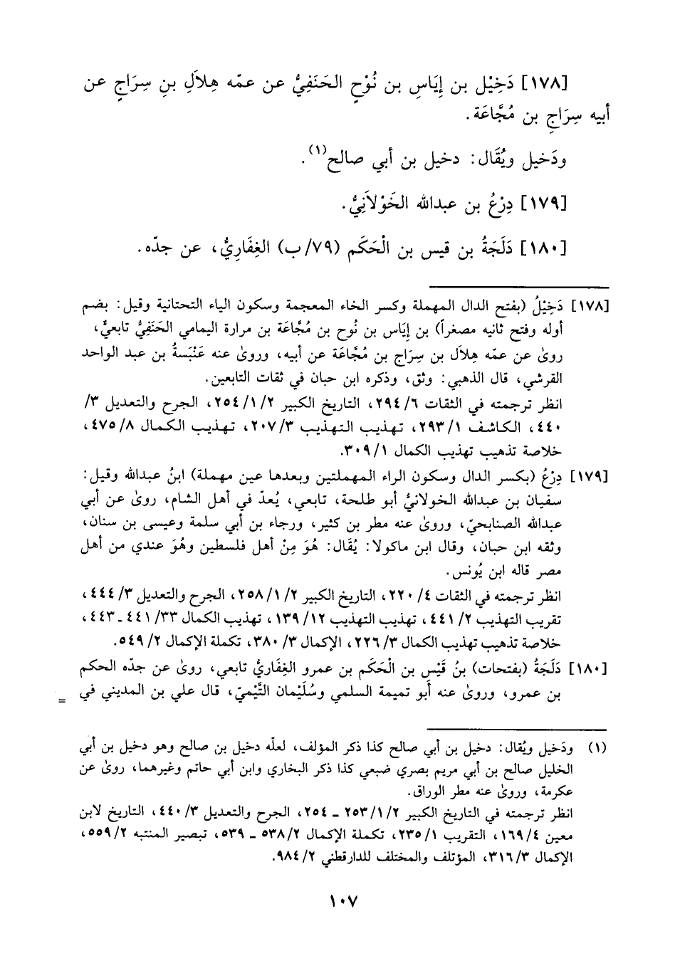 178- دخيل بن إياس بن نوحٍ الحنفي عن عمه هلال بن سراج عن أبيه سراج بن مجاعة.