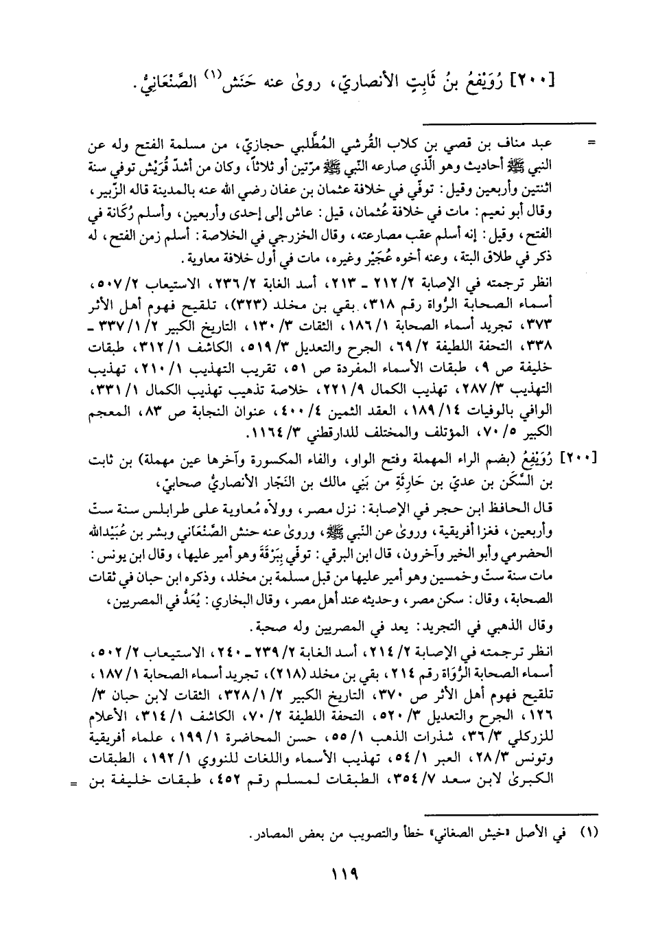 200- رويفع بن ثابتٍ الأنصاري، روى عنه حنش الصنعاني.