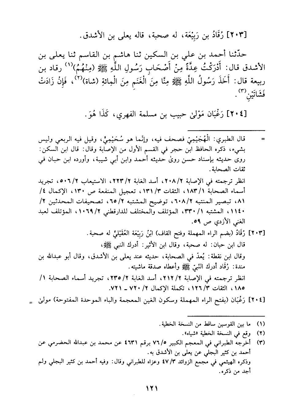 204- رغبان مولى حبيب بن مسلمة الفهري، كذا هو.