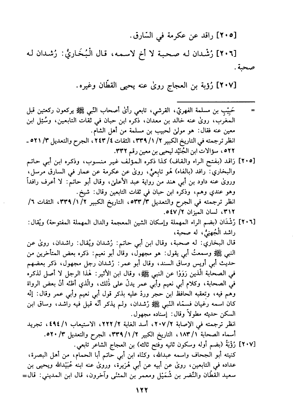 206- رشدان له صحبة لا أخ لاسمه، قال البخاري: رشدان له صحبة.