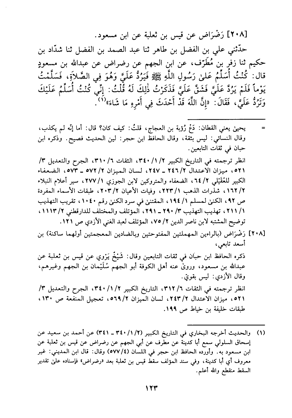 208- رضراض عن قيس بن ثعلبة عن ابن مسعود.