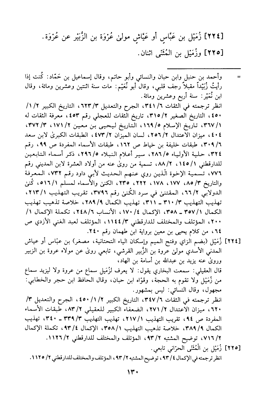 224- زميل بن عباسٍ أو عياشٍ مولى عروة بن الزبير عن عروة.