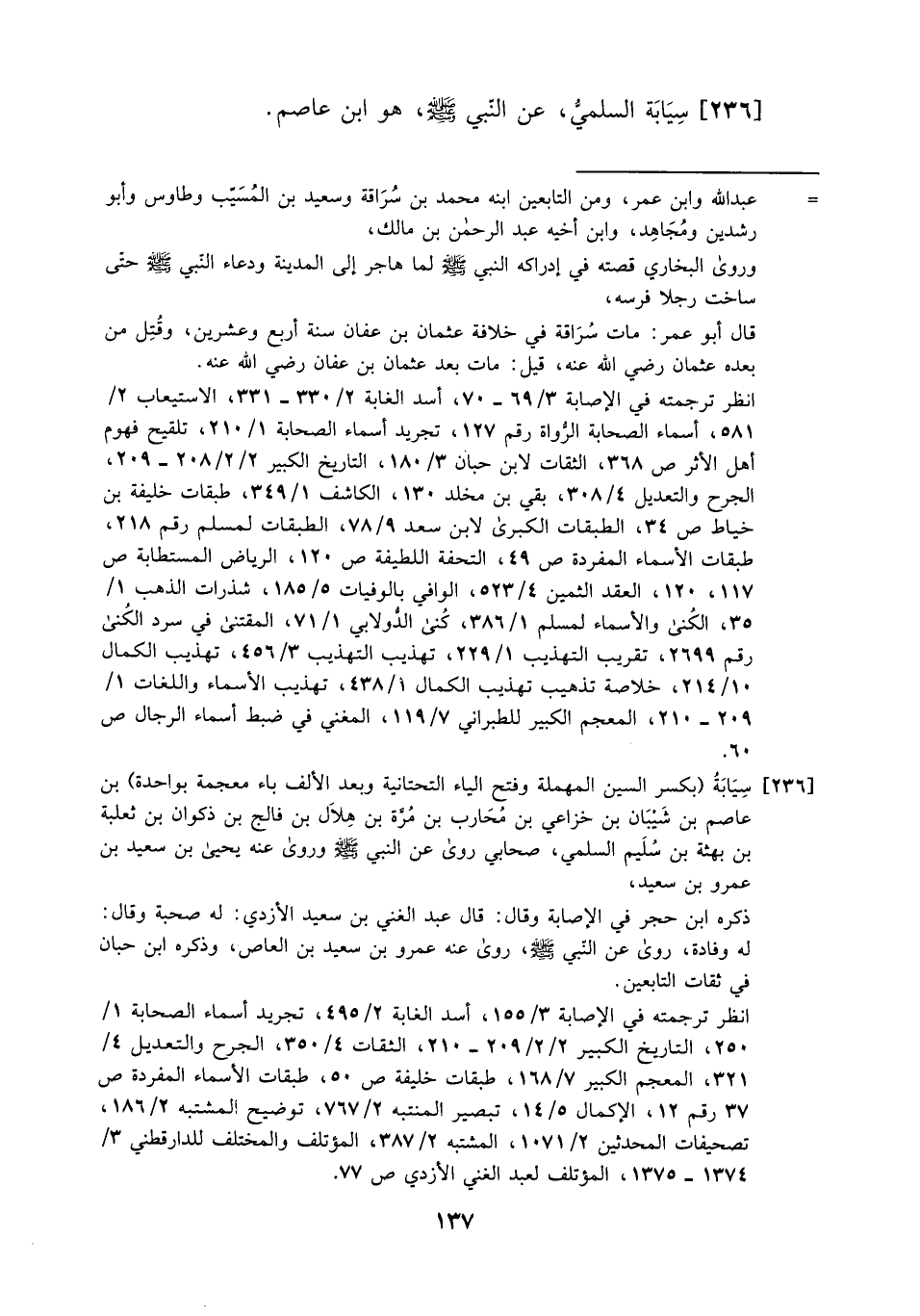 236- سيابة السلمي، عن النبي صلى الله عليه وسلم، هو ابن عاصم.
