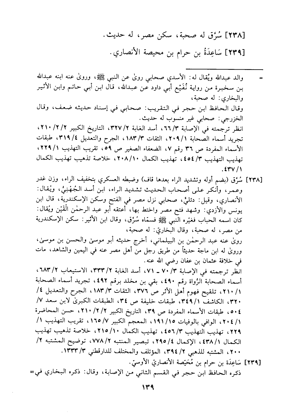239- ساعدة بن حرام بن محيصة الأنصاري.