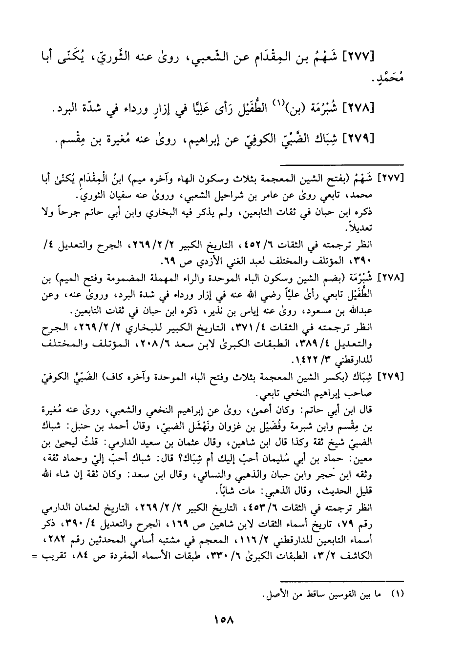 277- شهم بن المقدام عن الشعبي، روى عنه الثوري، يكنى أبا محمدٍ.
