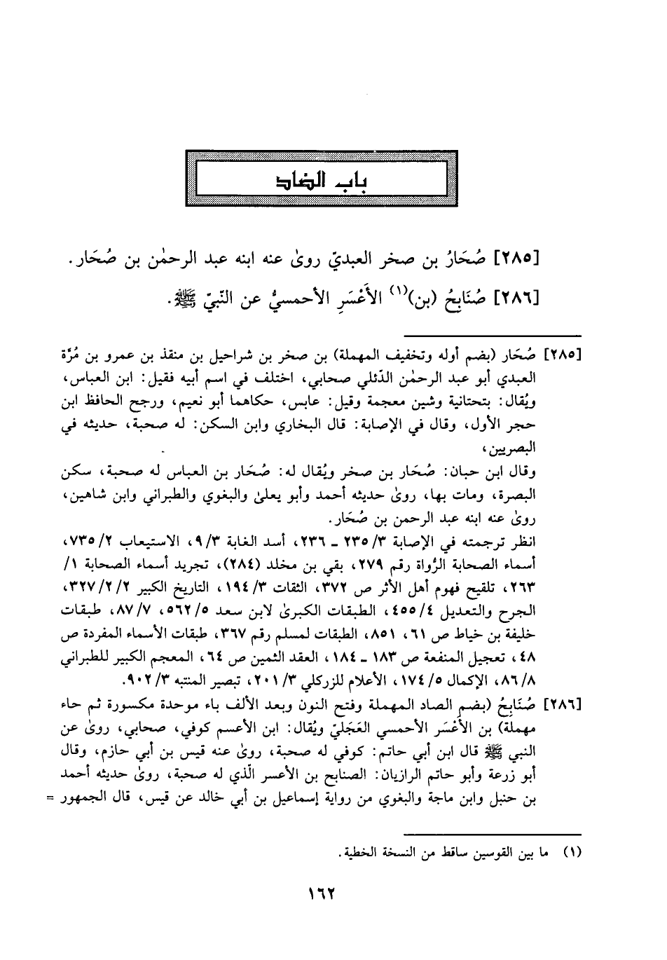 285-صحار بن صخر العبدي روى عنه ابنه عبد الرحمن بن صحار.