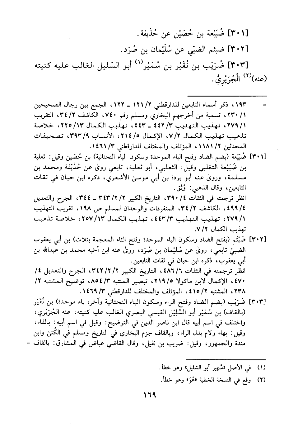 303- ضريب بن نقير بن سمير أبو السليل الغالب عليه كنيته (عنه) الجريري.