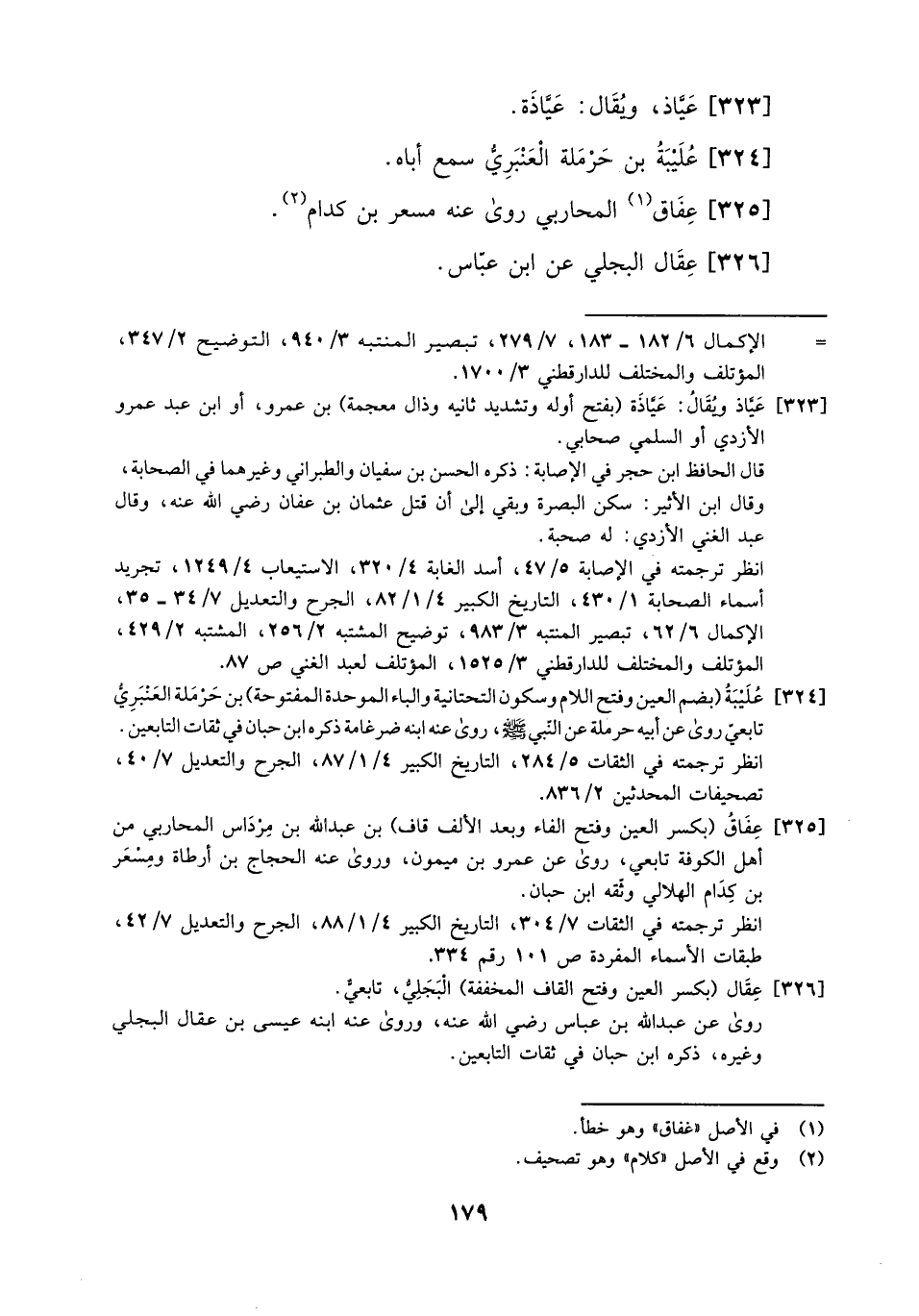 325- عفاق المحاربي روى عنه مسعر بن كدام.