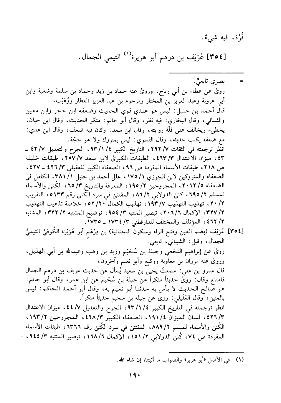 354- عريف بن درهم أبو هريرة التيمي الجمال.