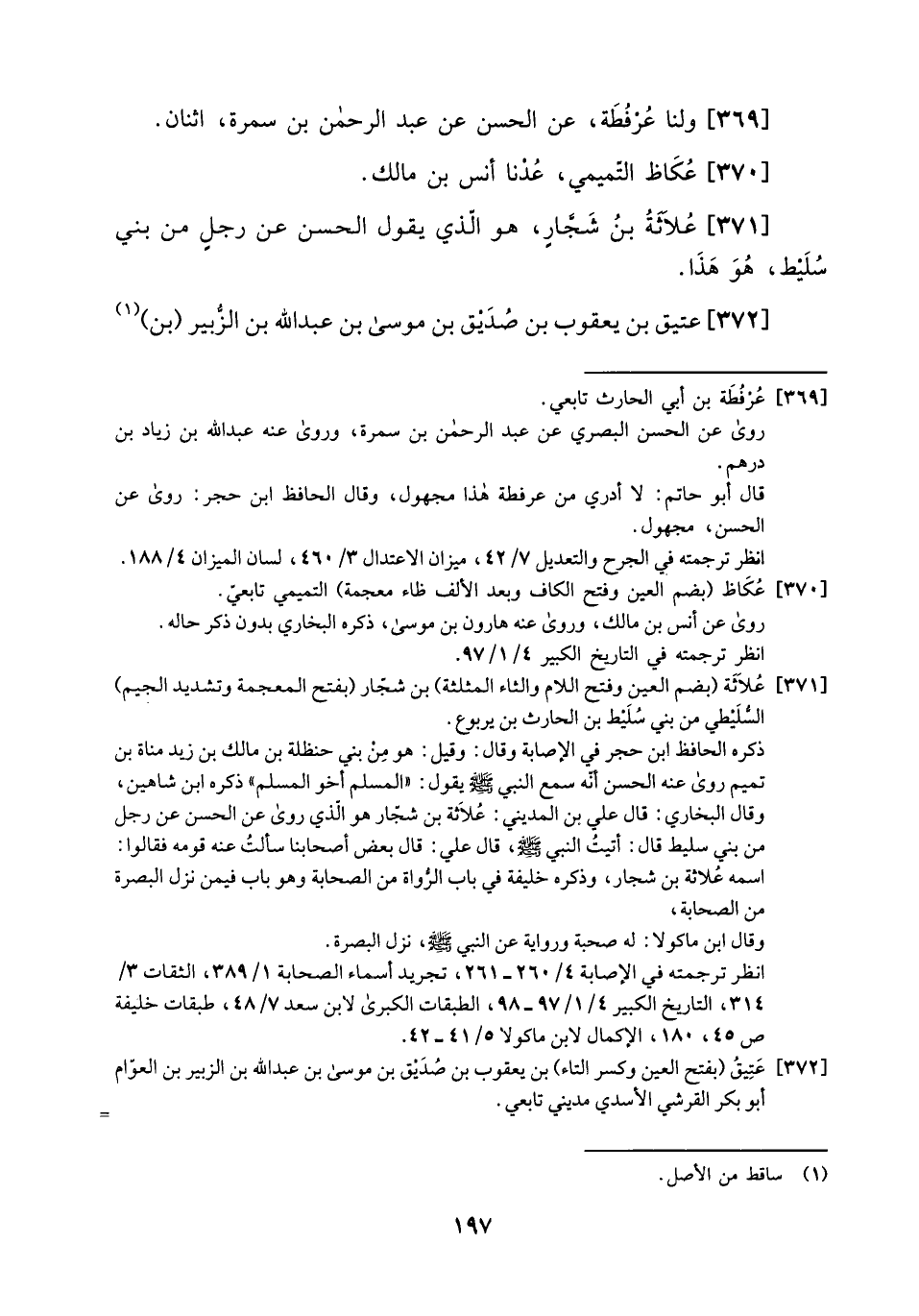 371- علاثة بن شجارٍ، هو الذي يقول الحسن عن رجلٍ من بني سليط، هو هذا.