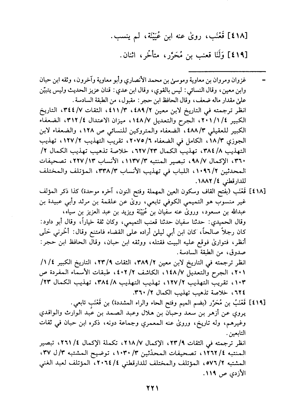 419- ولنا قعنب بن محرر، متأخر، اثنان.