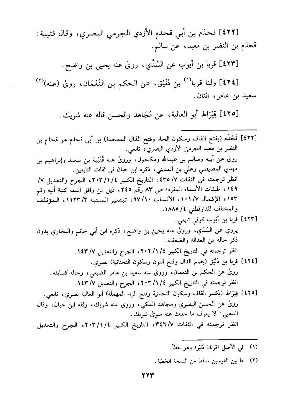 423- قربا بن أيوب عن السدي، روى عنه يحيى بن واضح.