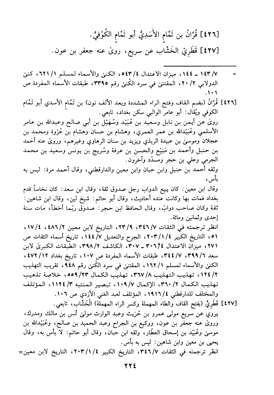 426- قران بن تمام الأسدي أبو تمام الكوفي.
