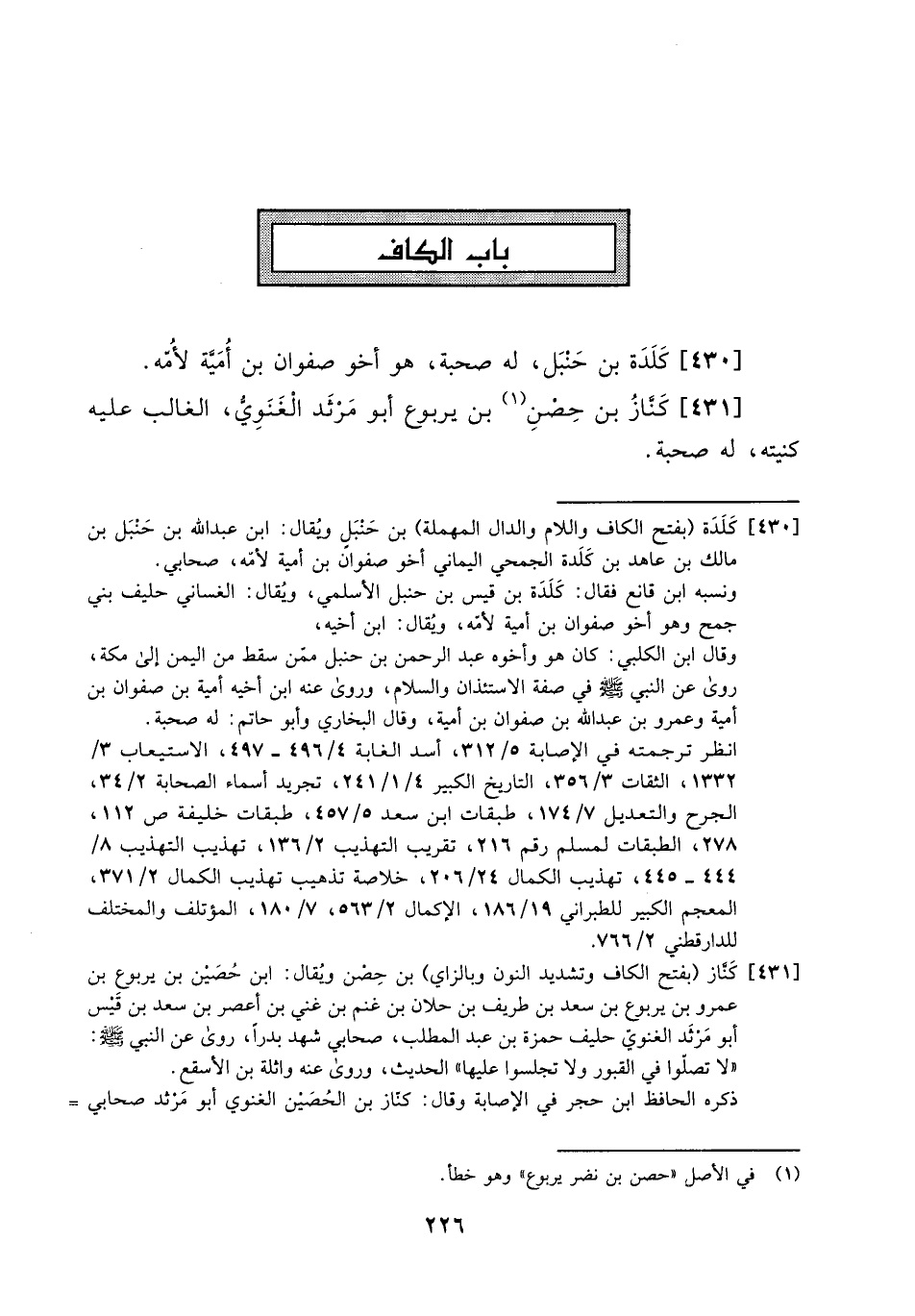 430- كلدة بن حنبل، له صحبة، هو أخو صفوان بن أمية لأمه)) .
