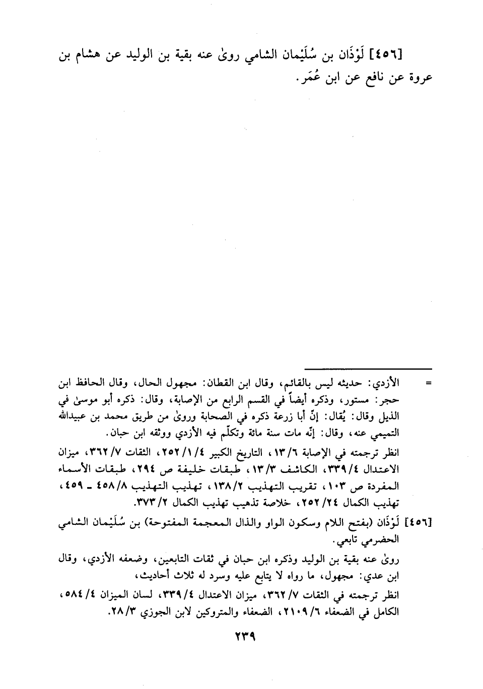 456- لوذان بن سليمان الشامي روى عنه بقية بن الوليد عن هشام بن عروة عن نافع عن ابن عمر.