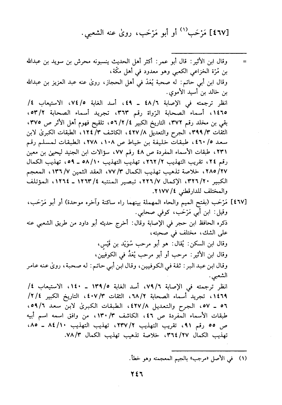 467- مرحب أو أبو مرحب، روى عنه الشعبي.