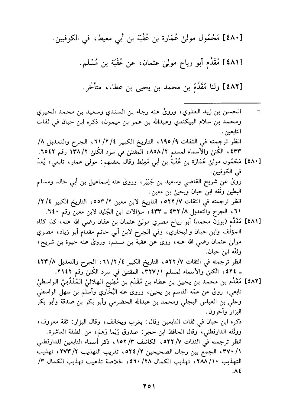 481- مقدم أبو رباح مولى عثمان، عن عقبة بن مسلم.