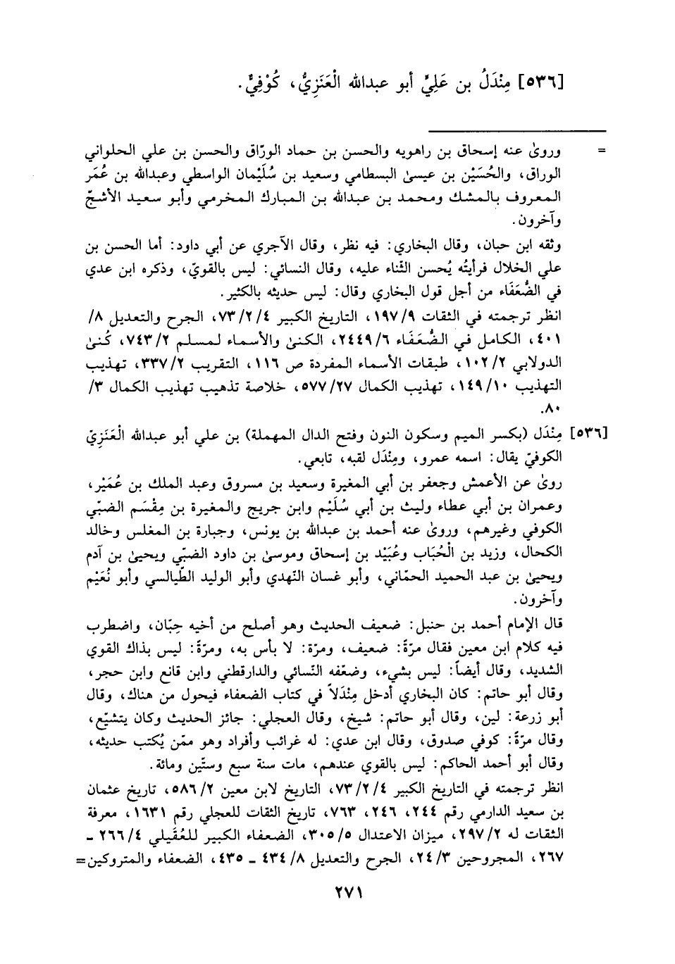 536- مندل بن علي أبو عبد الله العنزي، كوفي.