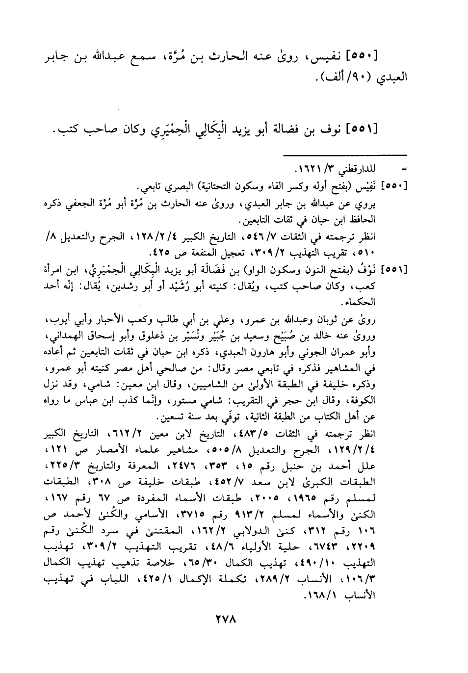 551- نوف بن فضالة أبو يزيد البكالي الحميري وكان صاحب كتب.