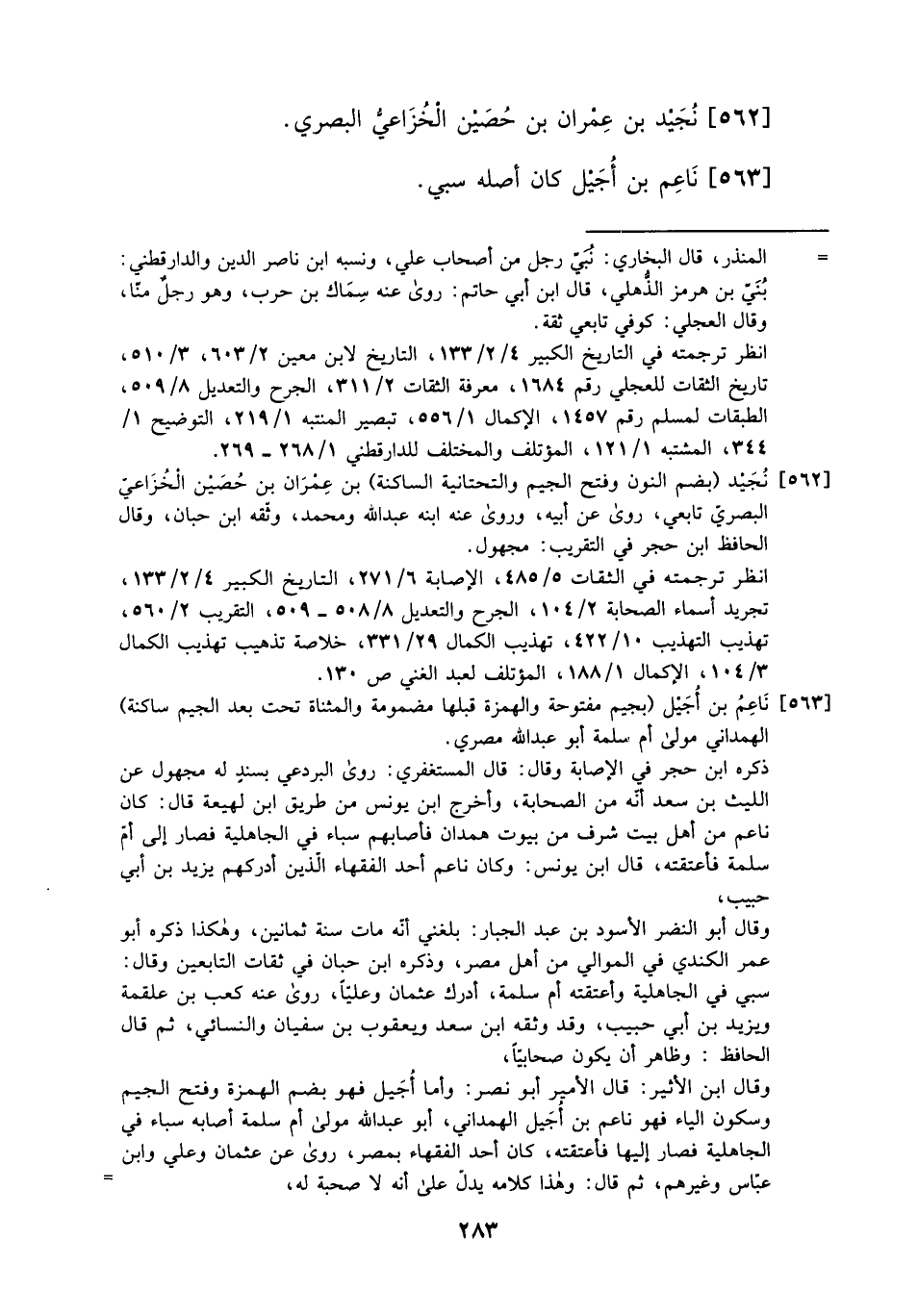 562- نجيد بن عمران بن حصين الخزاعي البصري.