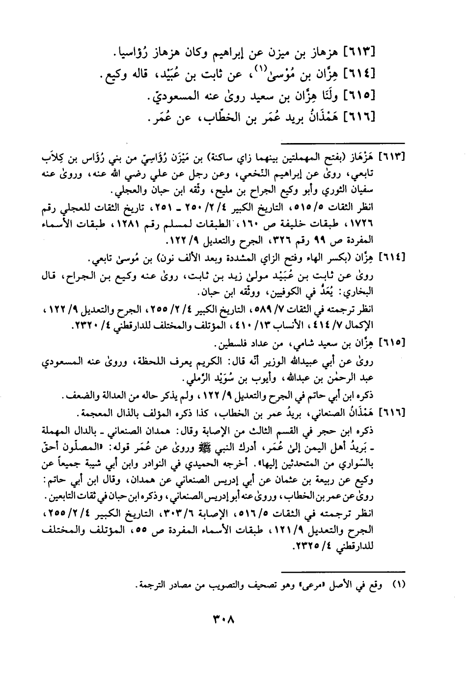 613- هزهاز بن ميزن عن إبراهيم وكان هزهاز رؤاسيا.