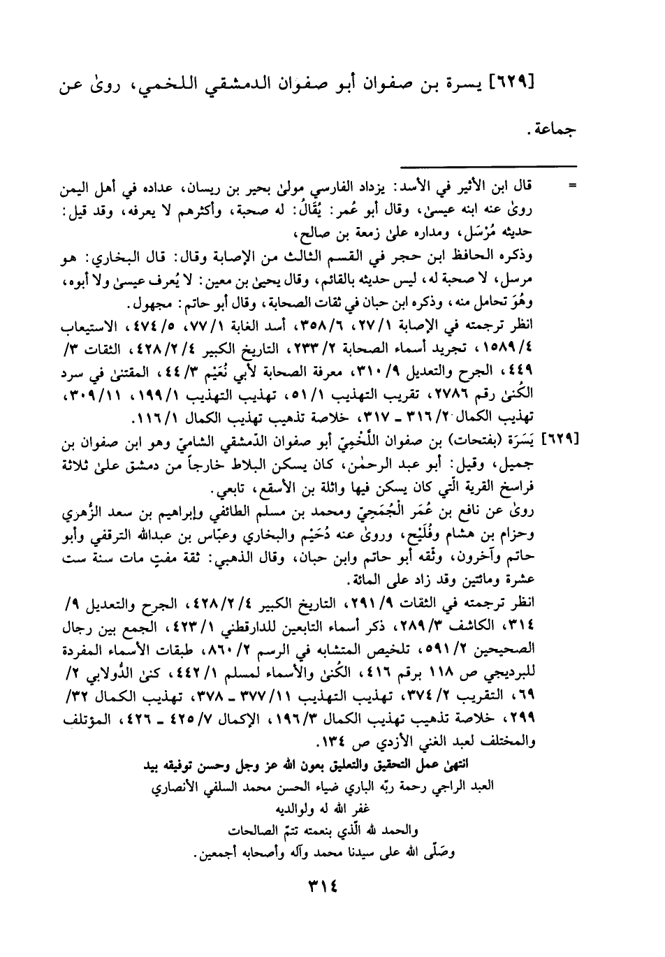 629- يسرة بن صفوان أبو صفوان الدمشقي اللخمي، روى عن جماعة.