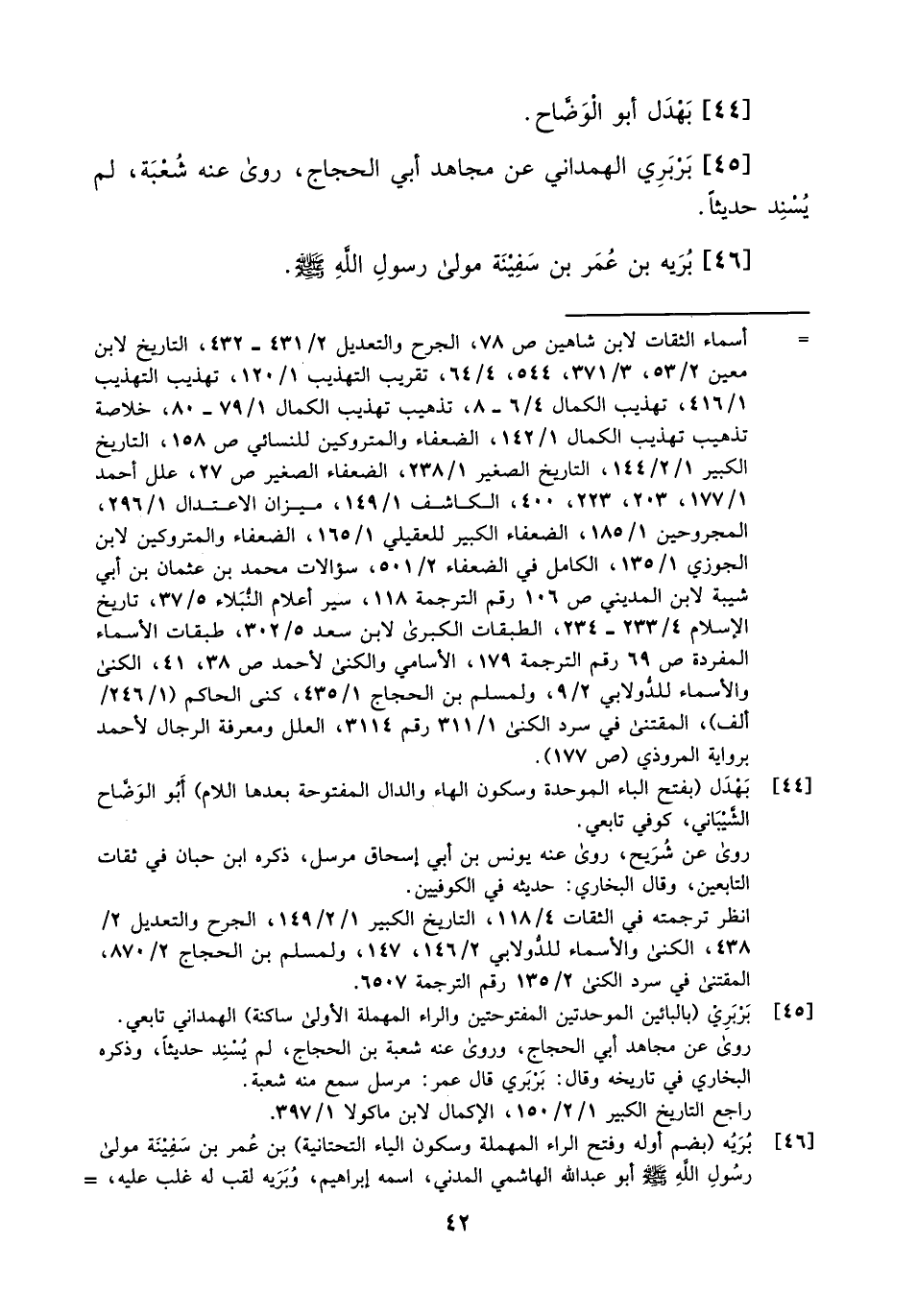45- بربري الهمداني عن مجاهد أبي الحجاج، روى عنه شعبة، لم يسند حديثاً.