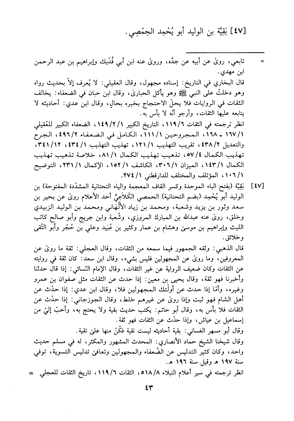47- بقية بن الوليد أبو يحمد الحمصي.