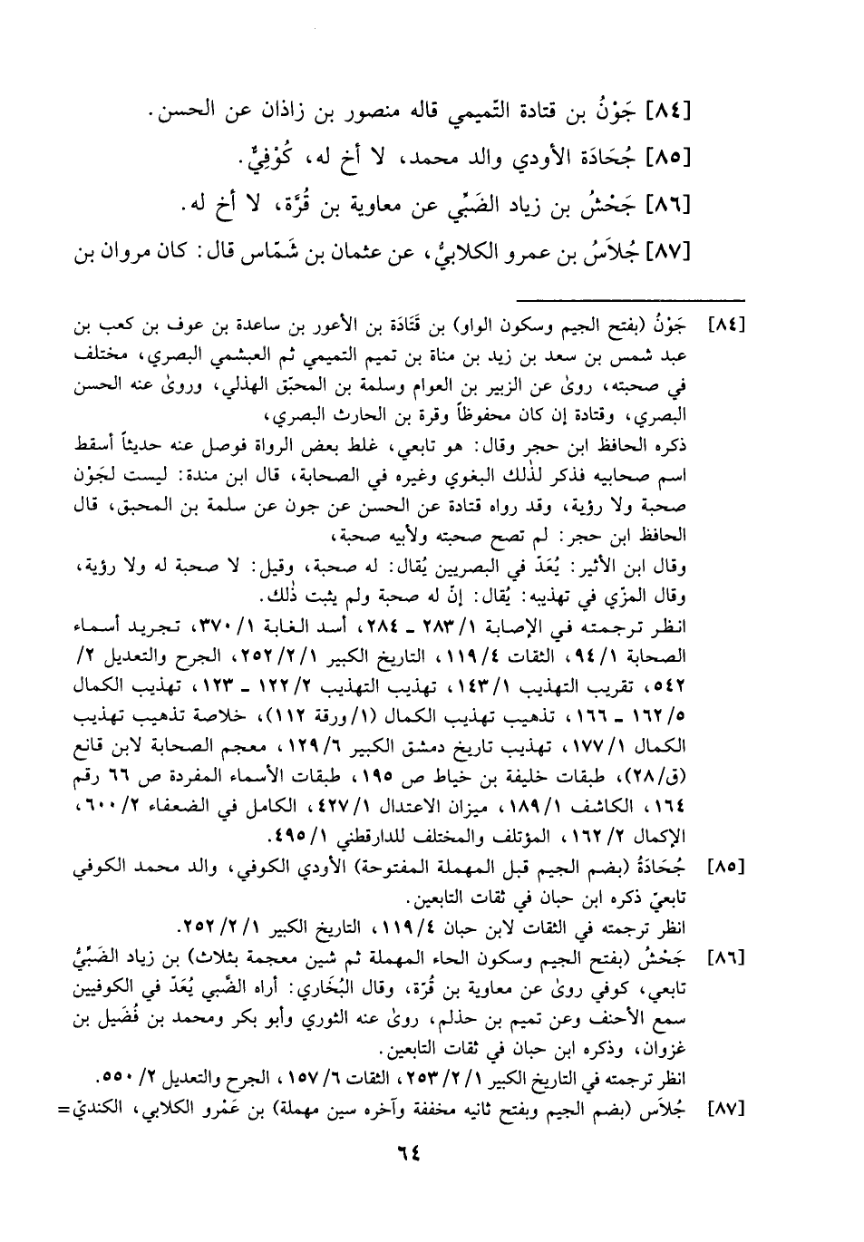 84- جون بن قتادة التميمي قاله منصور بن زاذان عن الحسن.